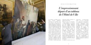 Décrochage, décadrage et emballage du tableau « Renaud de Bourgogne affranchit Belfort en 1307 » (3,05 x 2,75 m) prêté par les Musées & Citadelle de Belfort